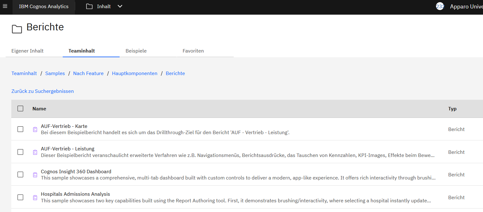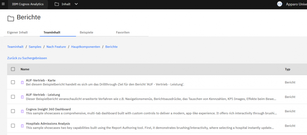 Wir hatten schon über die kommenden Beispiele berichtet. Jetzt sind die in da. Cognos wird mit einem modernen und wirklich umfangreichen Beispiel ausgeliefert. Anwender sehen also direkt nach der Installation bzw. Buchung einer Cloud-Umgebung wie Leistungsfähig Cognos geworden ist: