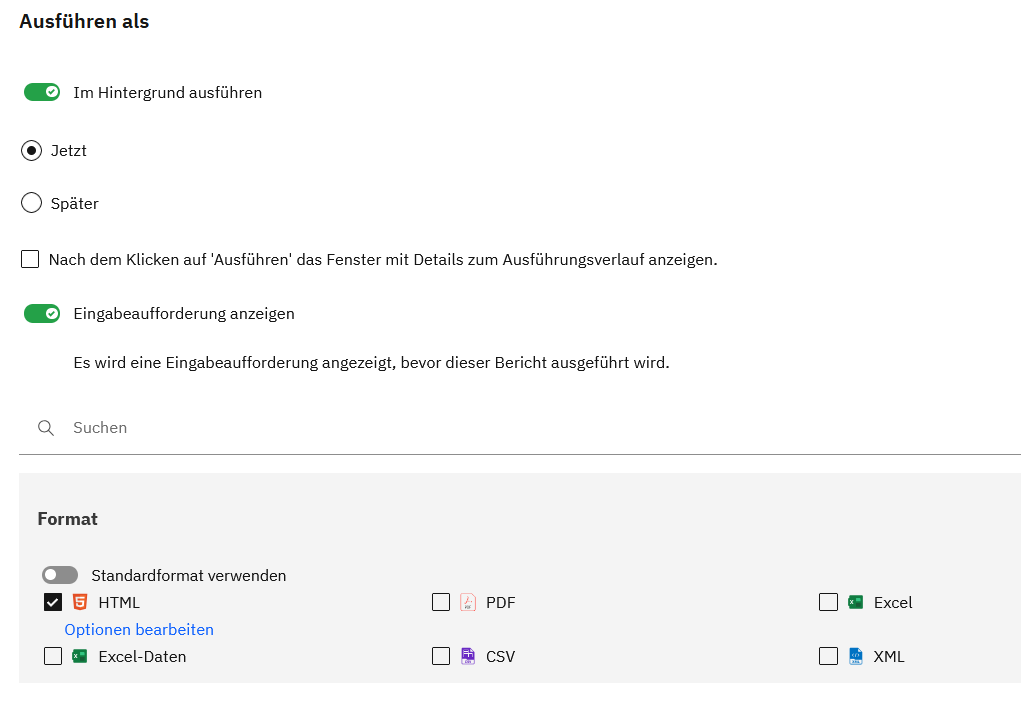 Ganz nebenbei wurden neue Symbole für das Ausgabeformat eingeführt (Excel, PDF… ). Das hatten wir bis zur Version 10.2.4 schon und war wirklich hilfreich. Leider wurde das wieder nicht konsequent durchgezogen. Im Team-Inhalt gibt es weiterhin nur ein Symbol für einen Bericht (s.o.) sodass man nicht erkennt in welchem Format ein Bericht angezeigt wird.