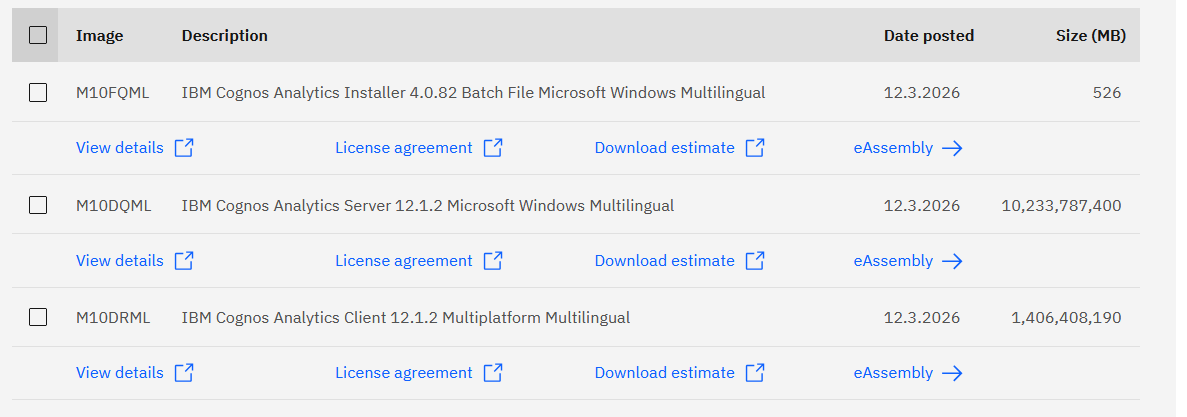 Aber nun zur Übersicht: Am 12.03.2026 wurde die Cognos Analytics 12.1.2 zum Download bereitgestellt und auch auf den On-Demand-Cloud Umgebungen eingespielt. Der Download steht wie immer als Windows und Unix Variante zur Verfügung:
