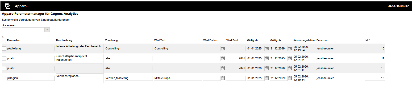 FunktionGlobale Cognos ParameterApparo Parametermanager