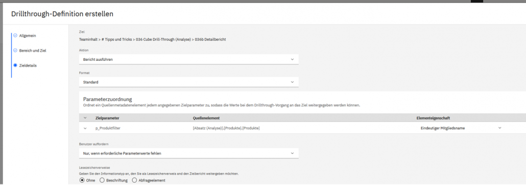 Ich sehe immer öfter Cognos Analytics Umgebungen in denen zwar mit dimensionalen Modellen gearbeitet wird, aber der Package Drill Through nicht genutzt wird.